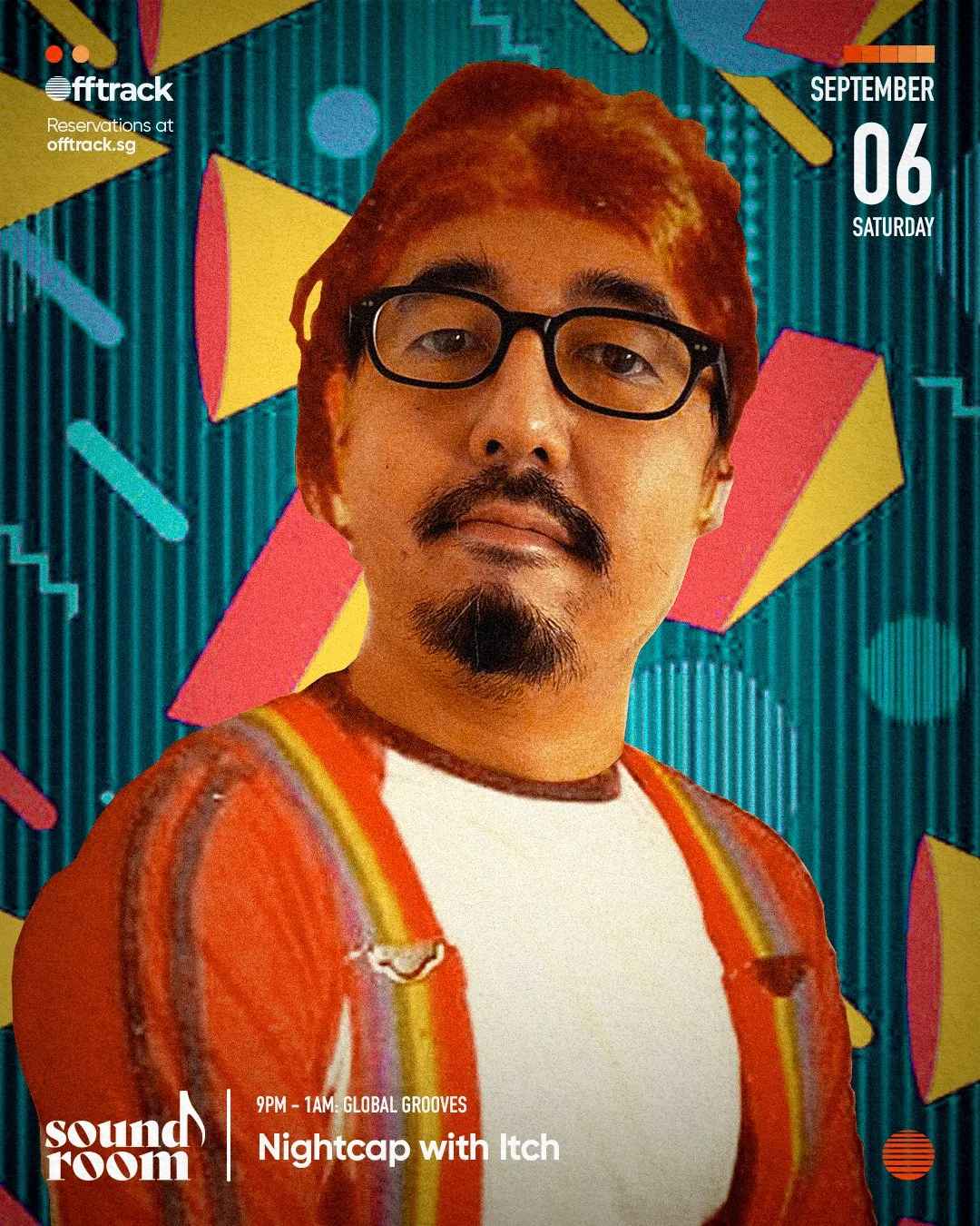 Sound Room: Nightcap With Itch Saturday, September 6, 2025 9:00 PM Sunday, September 7, 2025 1:00 AM Offtrack Pte Ltd 34 North Canal Road Singapore, , 059290 Singapore (map) Google Calendar ICS Itch's crowd favourite NIGHTCAP returns to Offtrack tonight. Big boogie tunes from yesteryear across the Asian continents all night long served on our yummy La Scalas. Pull up and boogie on!